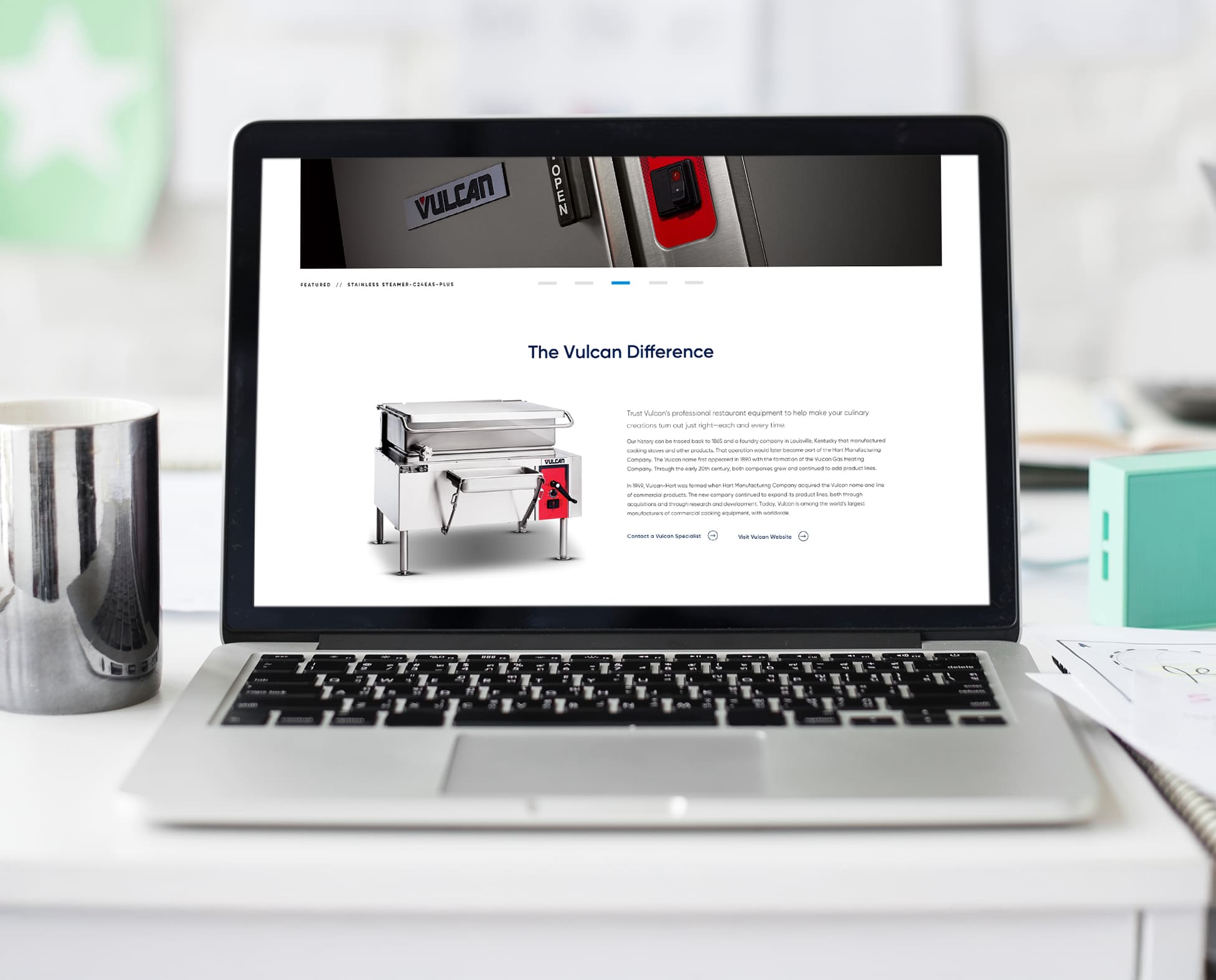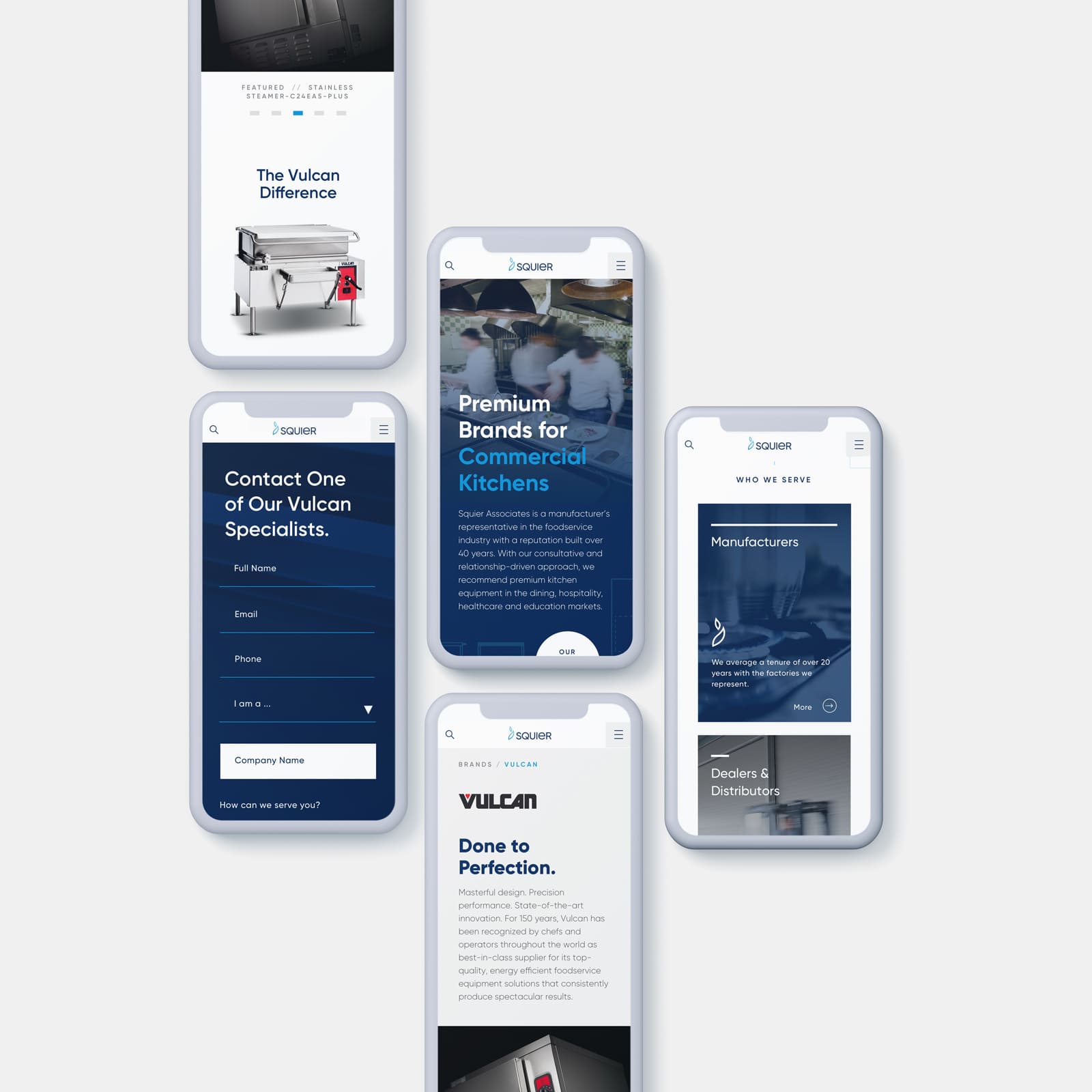 While Senior Art Director at Vitamin, I created a new brand system with a logo, print collateral, and UX/UI for a high-end manufacturer's representative team that connects the world's top professional kitchens with premium equipment. They specialize in all things needed for commercial kitchens, from Cold Zone refrigerators to Vulcan free-range gas stoves. The brand conveys a value in high quality and client relationships. Naturally, the logo’s flame nods to both gas range stoves at the heart of each kitchen and their passion for quality. The site highlights the variety of manufacturer brands they offer and allows distributors, manufacturers, or end-users to easily find relevant information on their equipment brands.