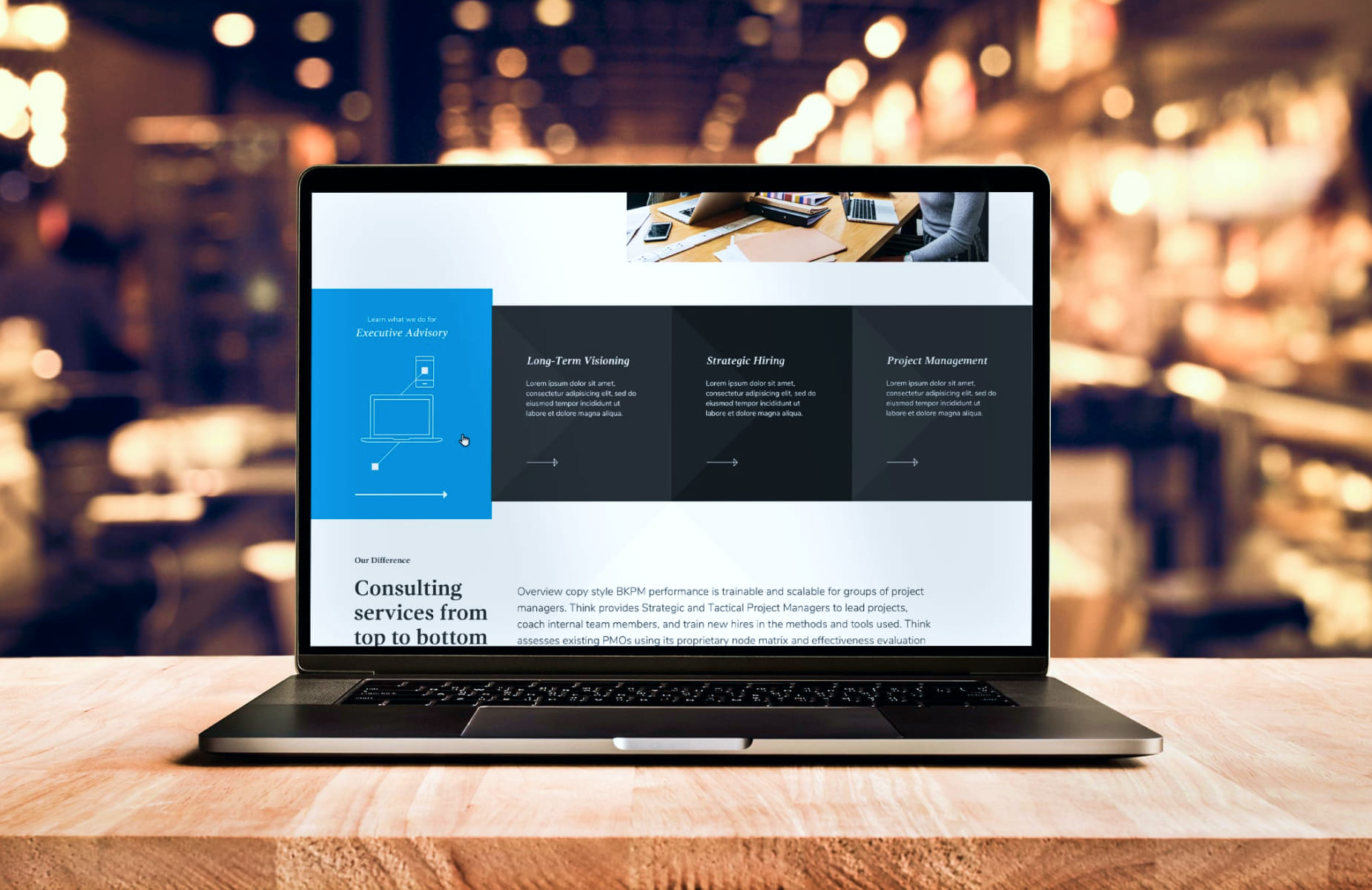 A new brand system was needed to reflect the strategy behind the consultative service. Because they assist tech and operational businesses in becoming more efficient and maximizing their potential, a triangular mark growing toward the type connects the brand with their data-driven decisions. Their consultants’ advice is backed by analytics. A streamlined mark referencing progress and growth charts speaks to the foundation of their value.